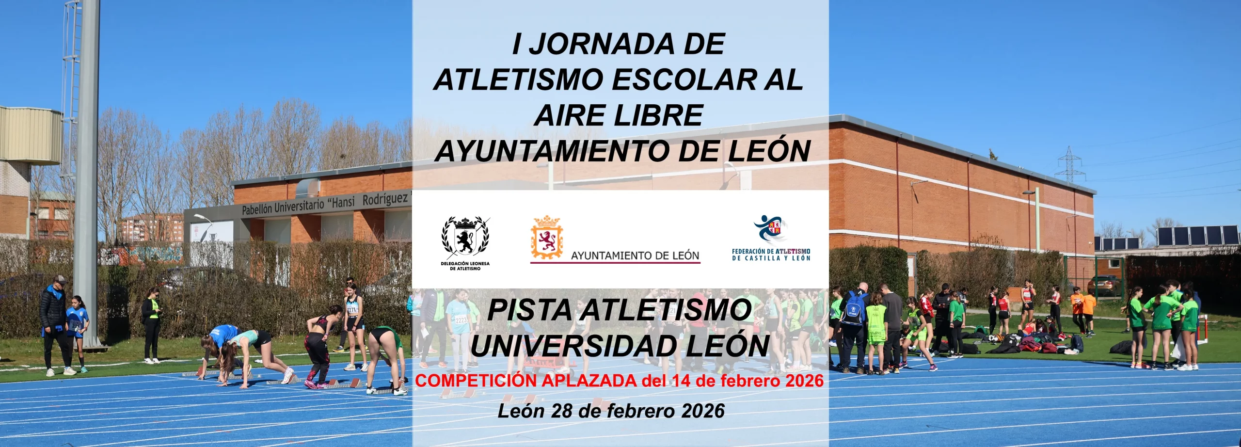 En la pestaña de resultados podéis revisar los atletas que ya estabais apuntados el día 14 de febrero. El sábado 28 de febrero de 2026 (prueba aplazada del 14 de febrero) en las pistas de atletismo de la Universidad de León se celebra la I Jornada de atletismo aire libre –