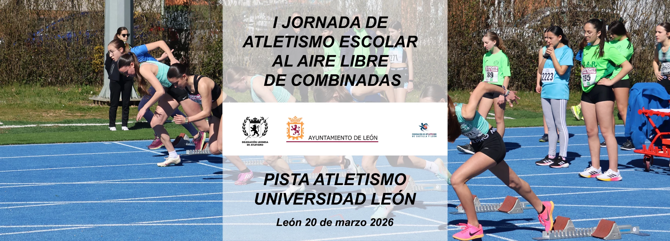 El viernes 20 de marzo de 2026 en las pistas de atletismo de la Universidad de León se celebra la I Jornada de atletismo escolar aire libre PRUEBAS COMBINADAS.
