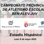 El Campeonato Provincial Escolar de Atletismo en Pista Alevin y Juvenil se disputó e el domingo 8 de mayo para las categorías benjamín, alevín y juvenil en el Estadio Hispánico de León a partir de las 10:00 horas.